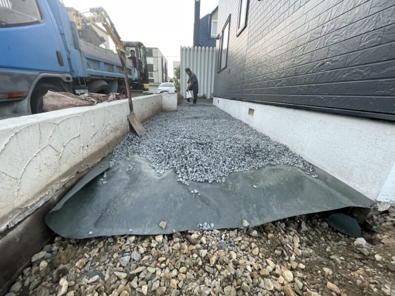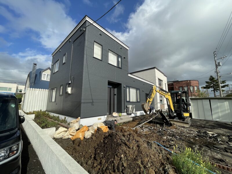 ではでは、塗装関係の工事が完了しましたので足場を解体して外構工事に入っていきます!