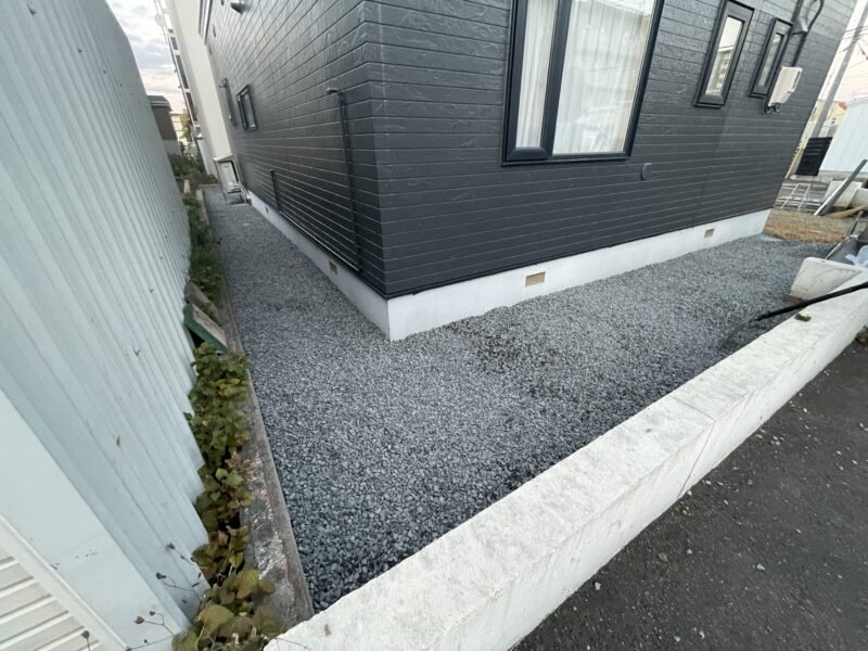雑草が凄かった家屋周囲もスッキリしましたし、防草シートを敷設しましたので今後は雑草処理もしなくてすみますね♪