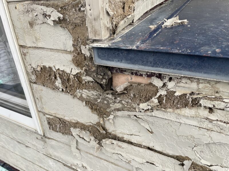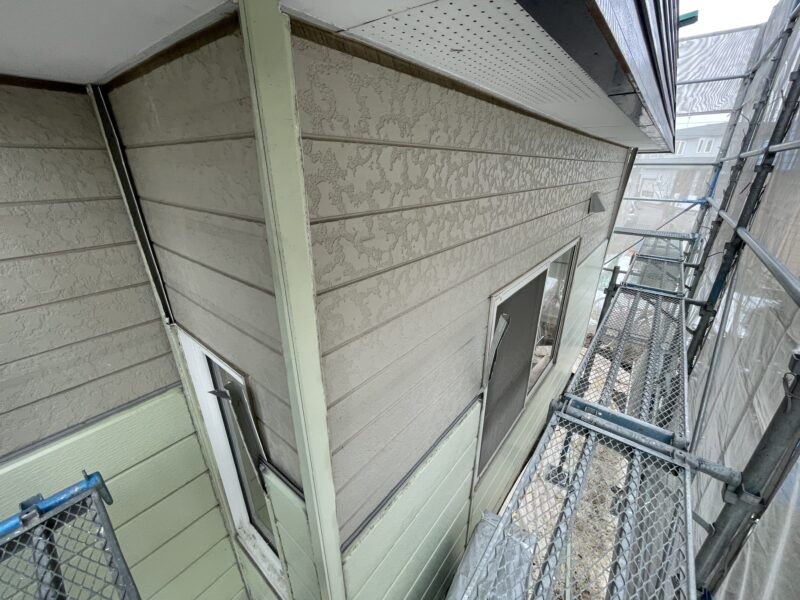 上貼されていた金属サイディングと1枚目の窯業サイディングの間に通風層がなく、結露が原因と思われる外壁劣化が部分的にみられました。