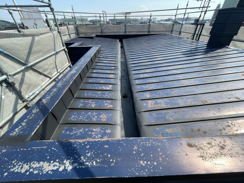 錆てしまっている箇所も多々ありますので、ケレン掛け、洗浄後に錆止め塗装を塗布していきます。