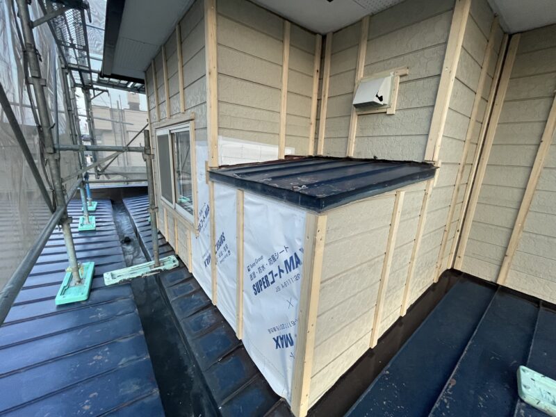 今までは無かった木下地を施工して既存外壁との間に通風層を作ります。