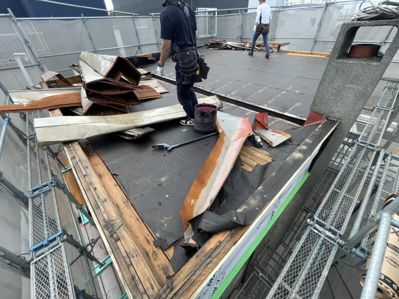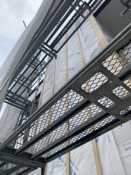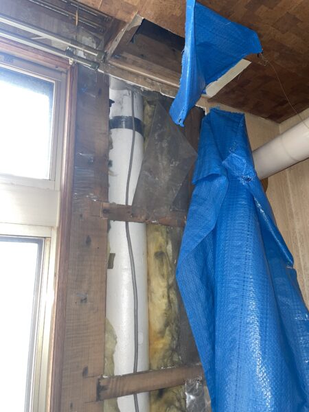 ダクトを修繕し、原因を解決してから防水シート+外壁を張っていきます。