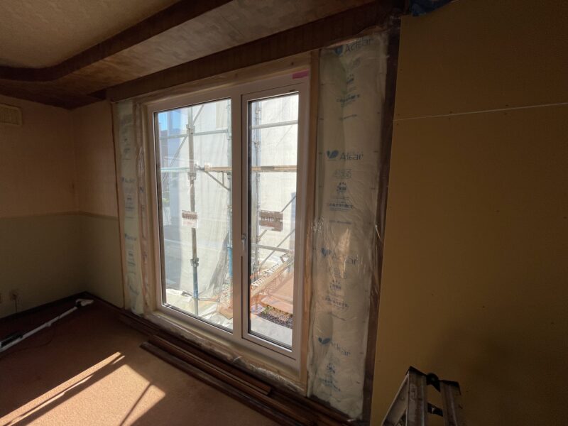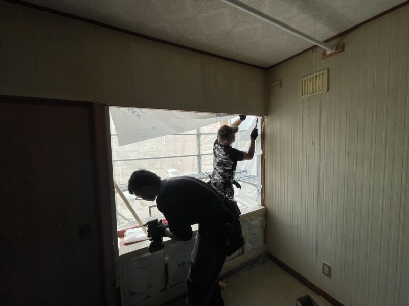 全ての窓を交換していきます。工程としましては外壁を剥がした状態で、窓を仕上げます。それから新規外壁を貼っていく手順となります。