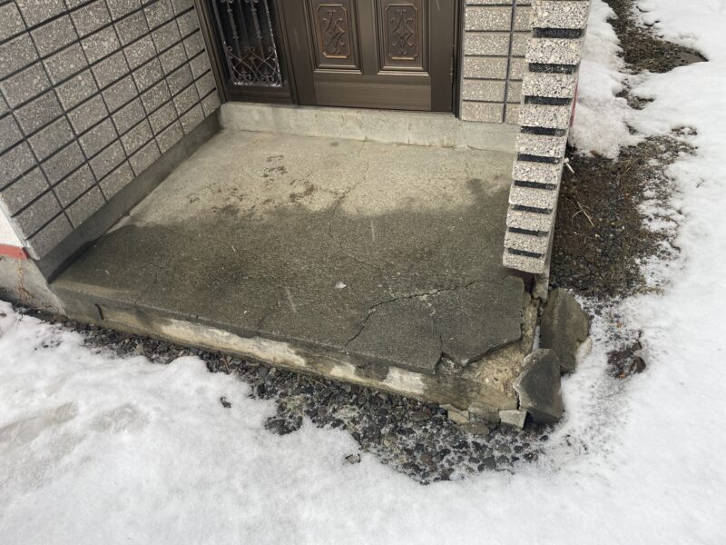 玄関ポーチの鉄骨柱は錆びてしまい穴が開いており、土間の凍害にも繋がっておりましたので、撤去交換いたします。