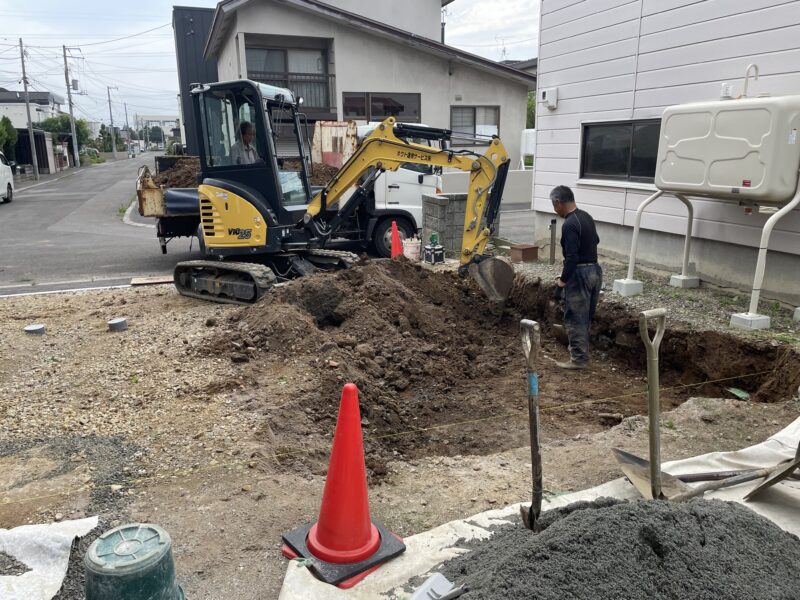 まずは、砕石を敷き詰めるために不要な土をよけていきます。