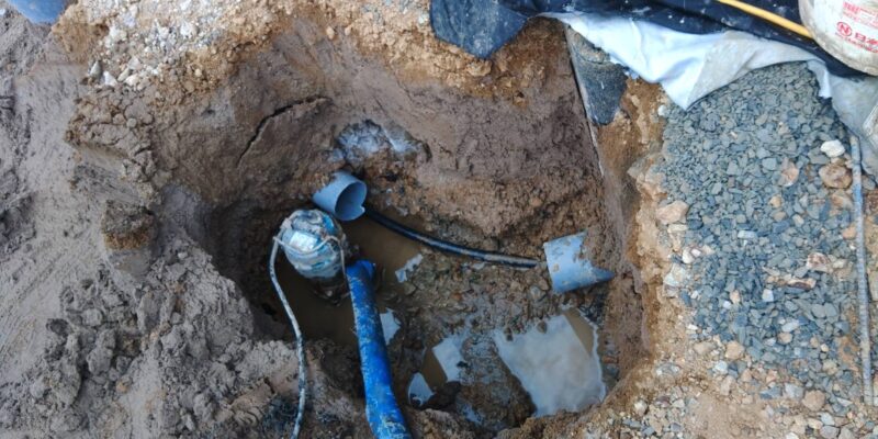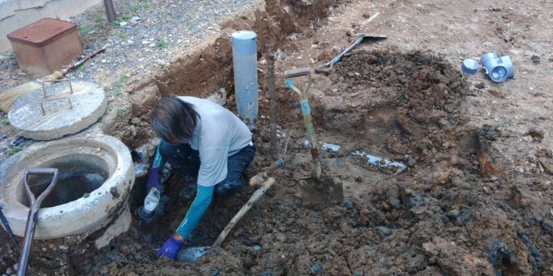 今回はL型ブロックを設置するために、排水管の点検マスの位置も変更していきます。