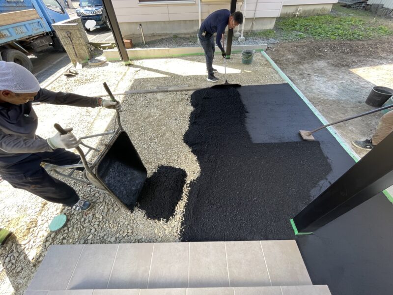 アスファルトは、冷えて固まる性質なので時期によっては施工後にすぐ駐車できることもメリットの一つです!