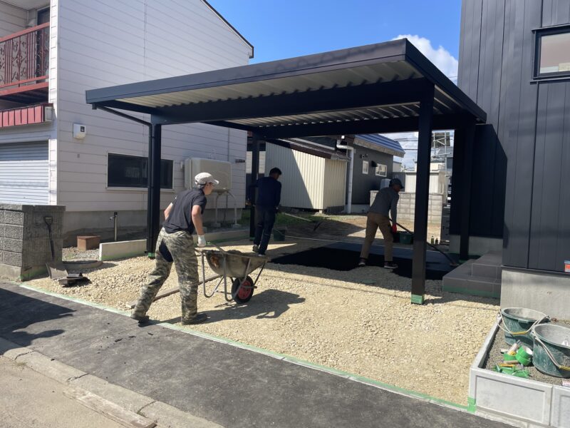 車の出入りをスムーズにするため、冬の除雪対策に、床面アスファルト+カーポート施工していきます!