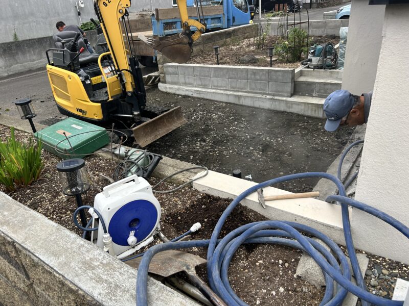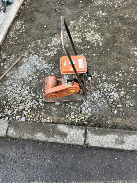 転圧して、路盤調整をしていきます。
