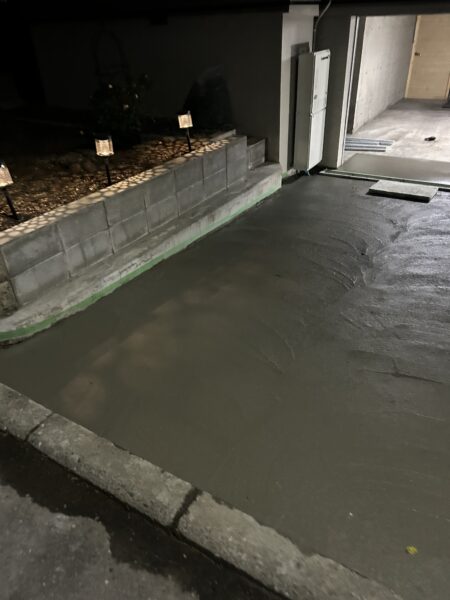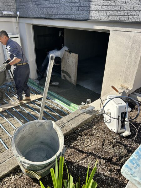 パイプを保護するため、生コンクリートを敷いて、鏝で綺麗に整えていきます。