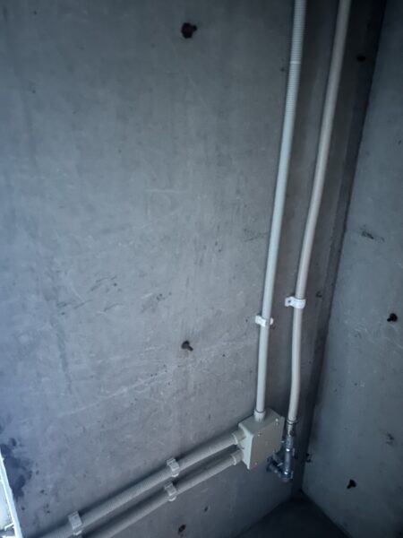 以前は凍結して流れが悪かった排水溝も暖房配管を埋設する事で問題を解消しました。